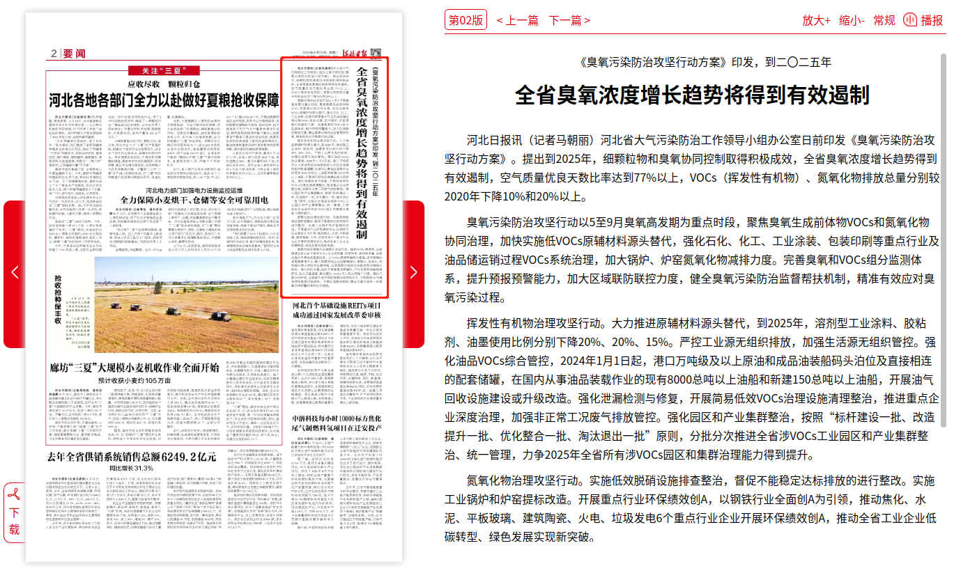 臭氧污染防治攻堅行動以5至9月臭氧高發(fā)期為重點時段,聚焦臭氧生成前體物VOCs和氮氧化物協(xié)同治理,加快實施低VOCs原輔材料源頭替代,強(qiáng)化石化、化工、工業(yè)涂裝、包裝印刷等重點行業(yè)及油品儲運(yùn)銷過程VOCs系統(tǒng)治理,加大鍋爐、爐窯氮氧化物減排力度。完善臭氧和VOCs組分監(jiān)測體系,提升預(yù)報預(yù)警能力,加大區(qū)域聯(lián)防聯(lián)控力度,健全臭氧污染防治監(jiān)督幫扶機(jī)制,精準(zhǔn)有效應(yīng)對臭氧污染過程。